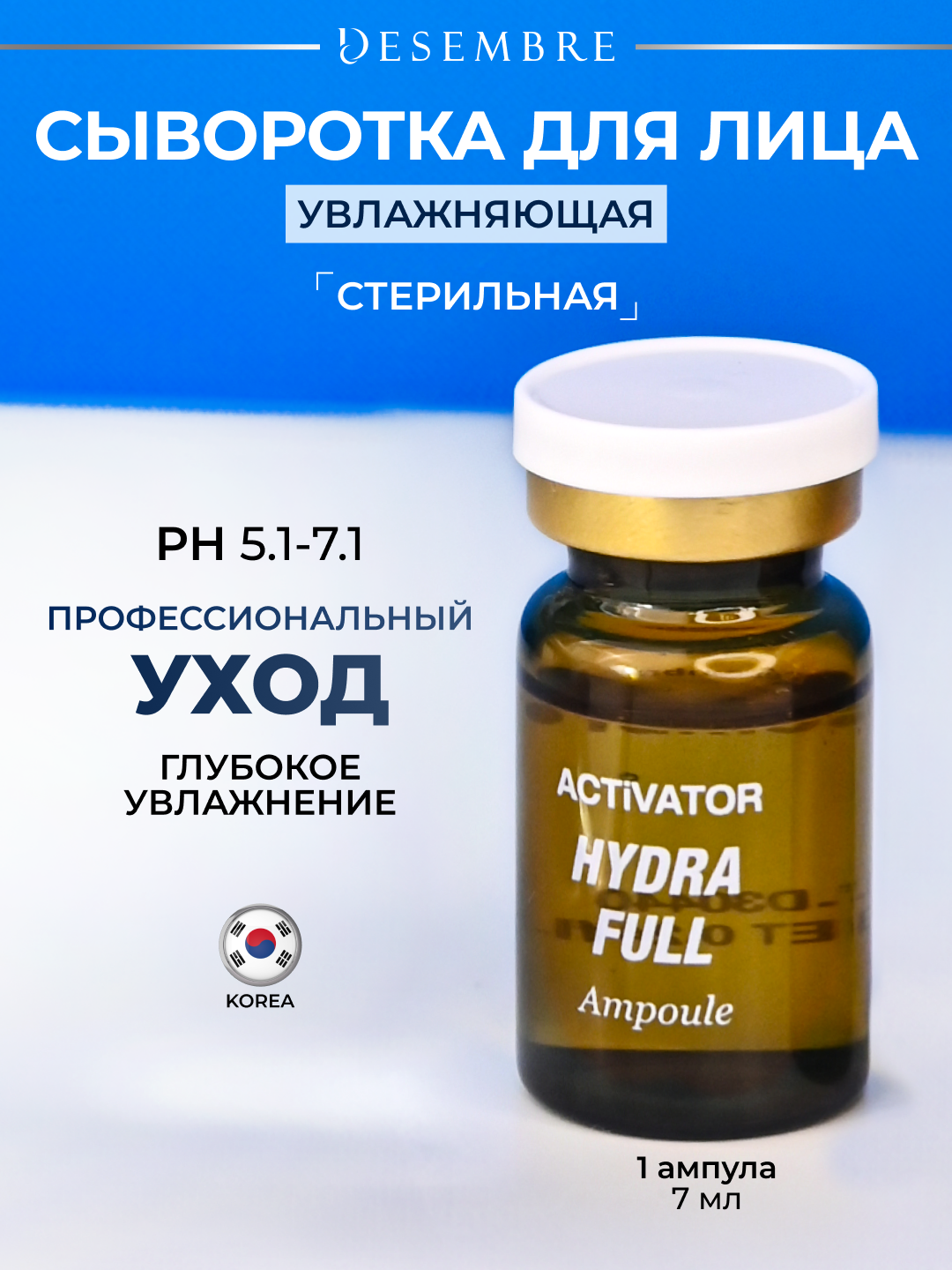 Desembre Hydro Activator Ampoule Ампульная сыворотка Активатор увлажнения для лица, 7 мл x 1 шт