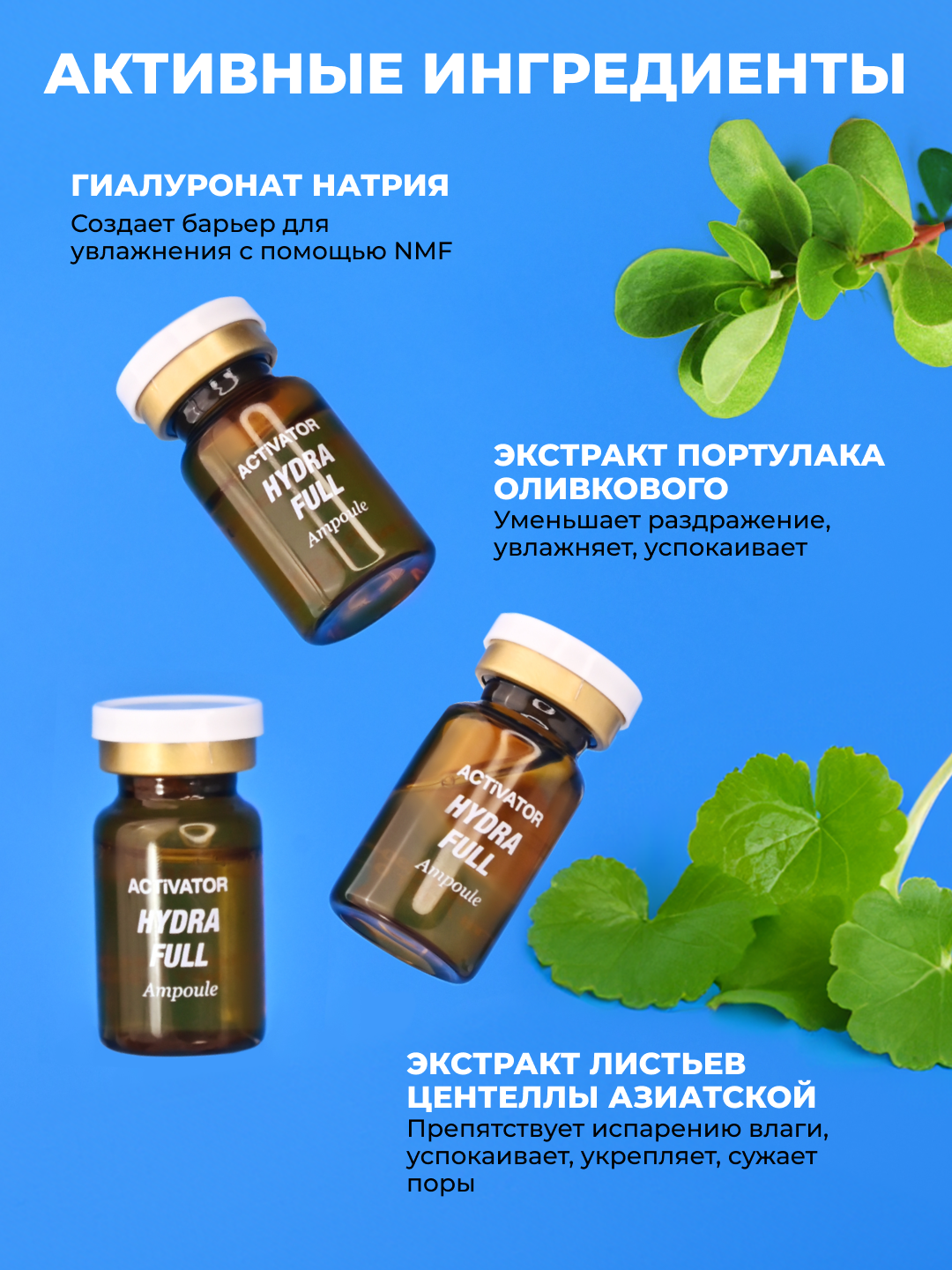 био экстракты, гиалуроновая кислота, мадекассосид, ниацинамид, центелла