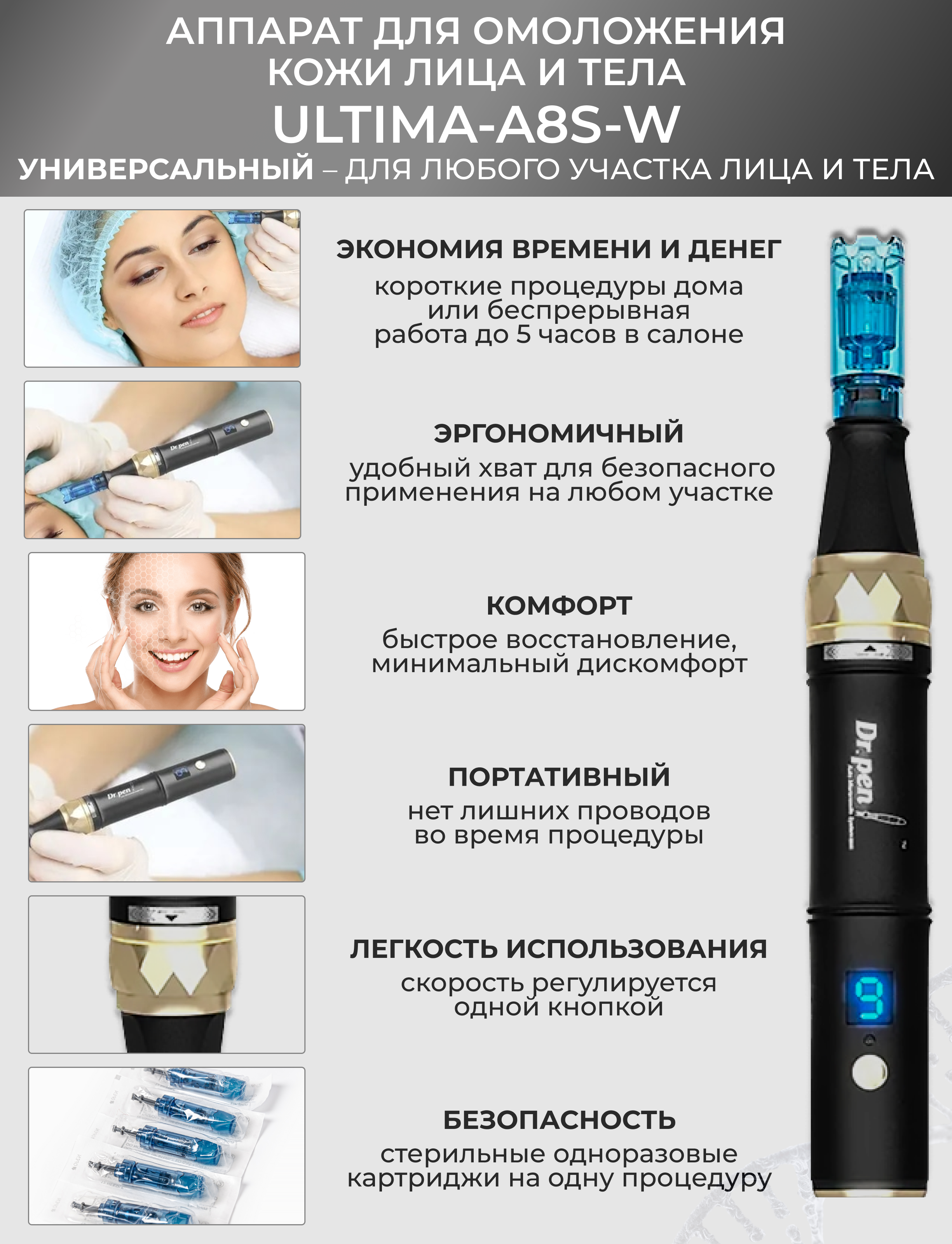 Dr.pen A8s Аппарат для фракционного микроштампинга / электрический массажер для лица / дермапен
