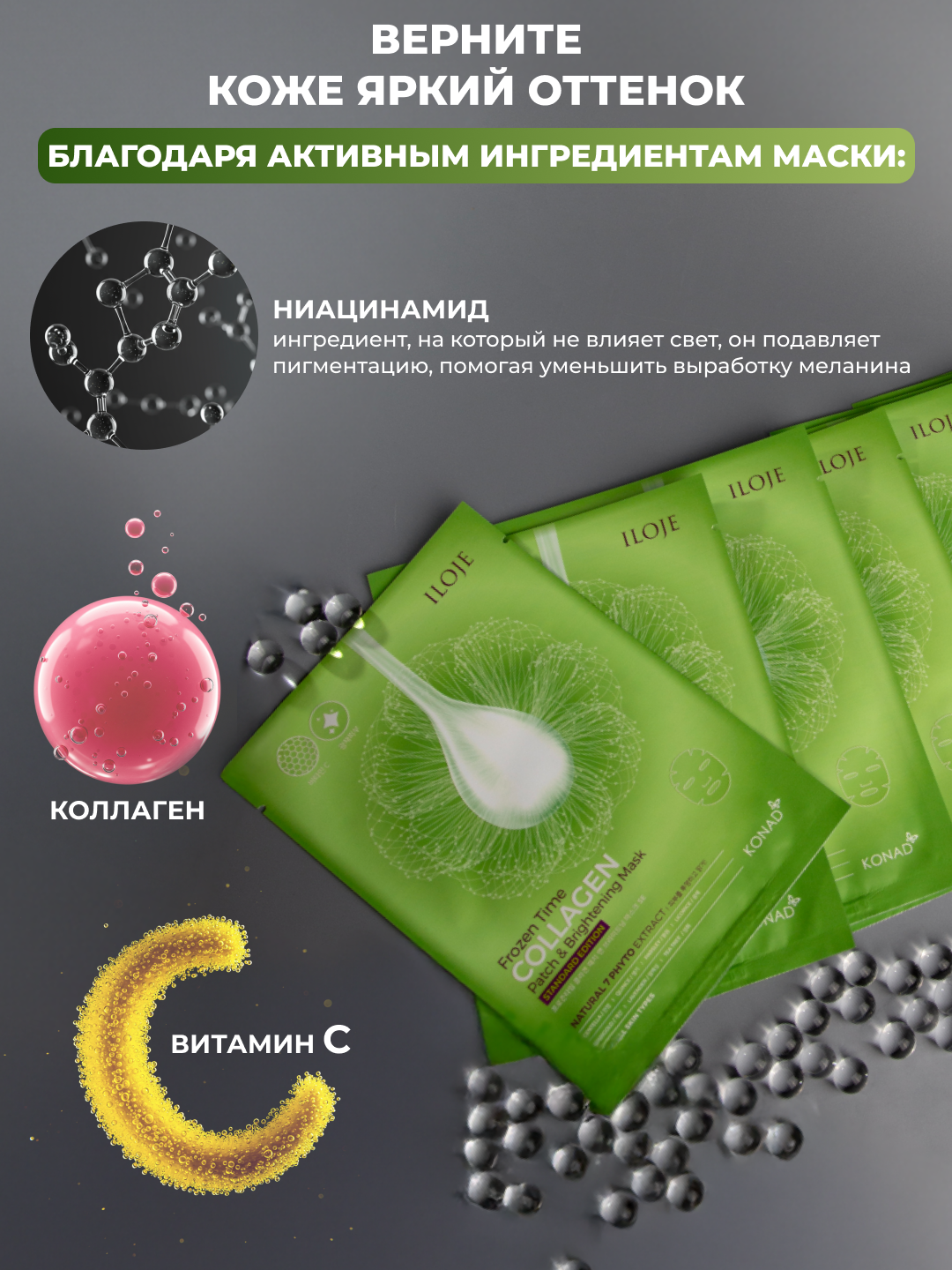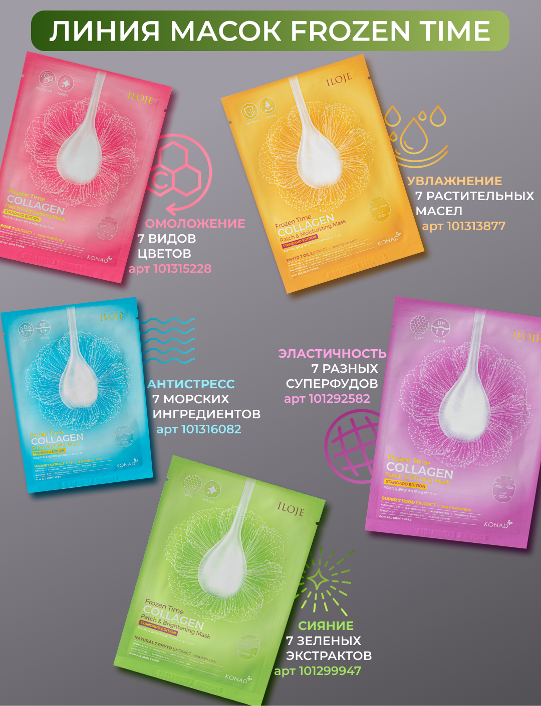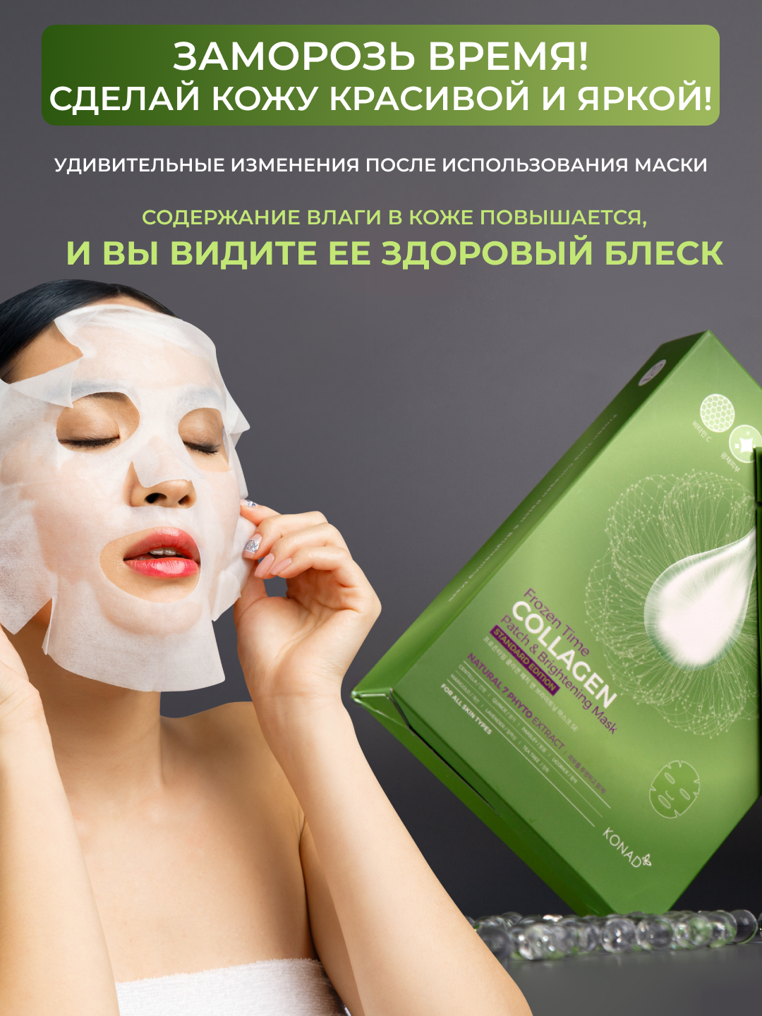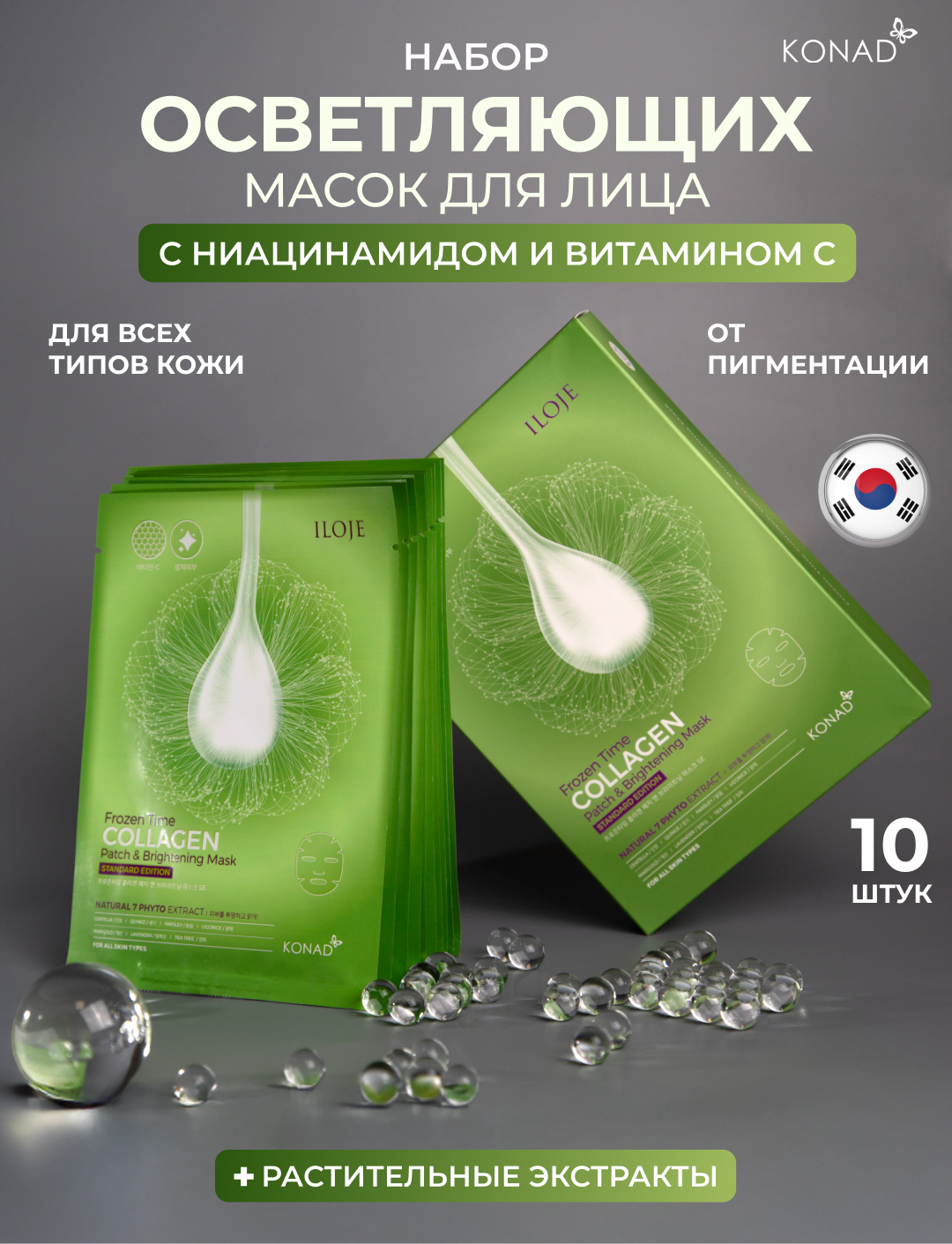 Konad Frozen Time Brightening Patch & Mask SE Придающая сияние маска патчи для лица тканевая, 10 шт — полный каталог