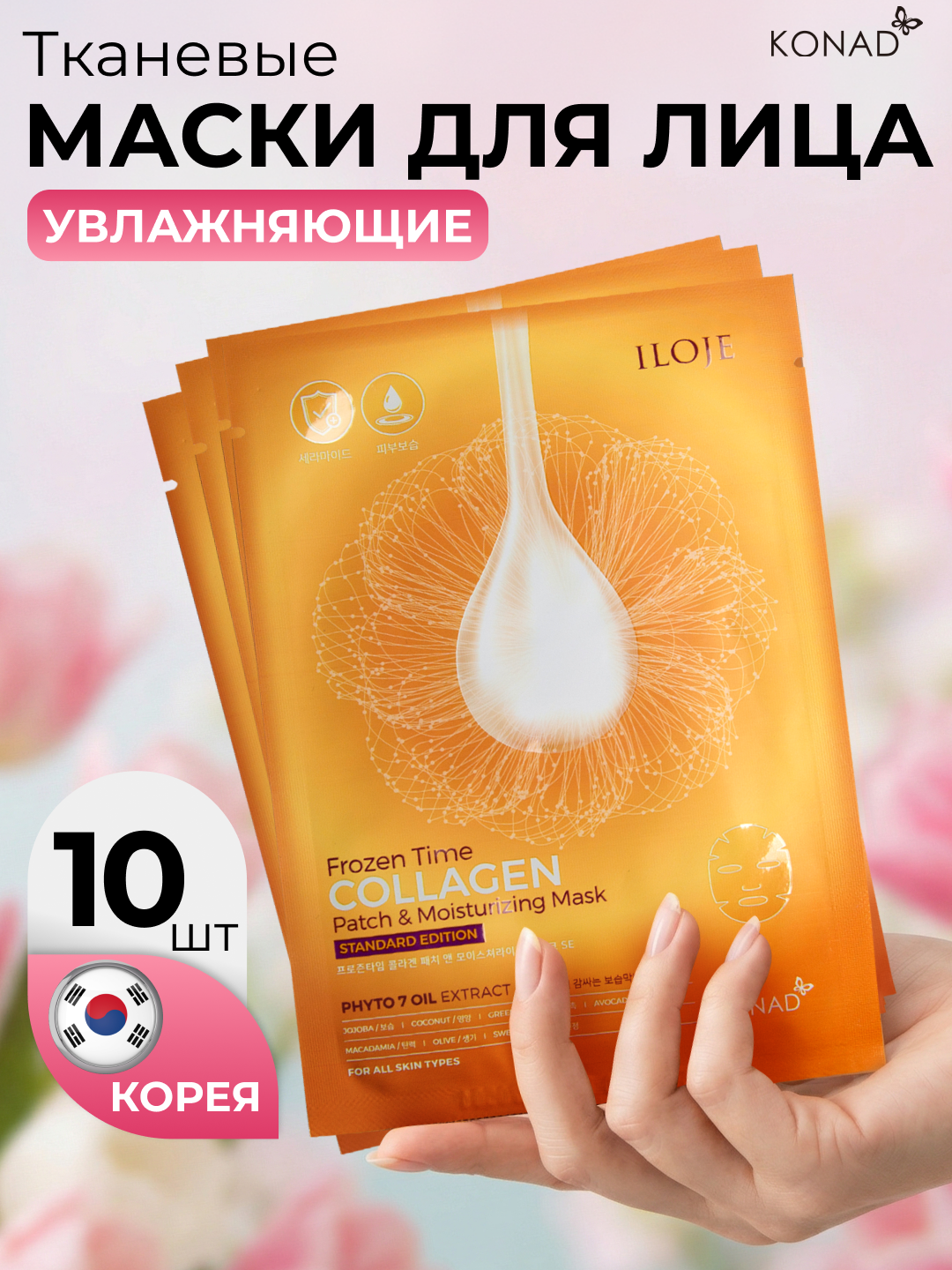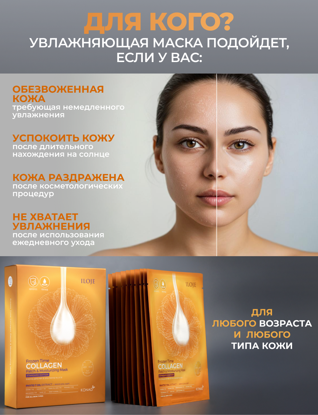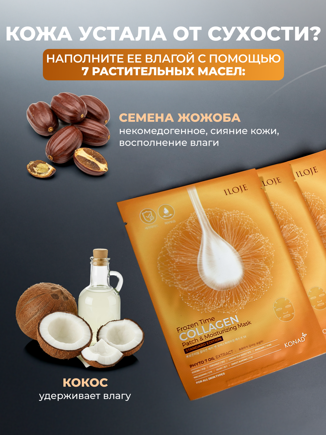 Konad ILOJE Frozen Time Moisturizing Patch & Mask SE Тканевая для увлажнения маска патчи для лица, 10 шт