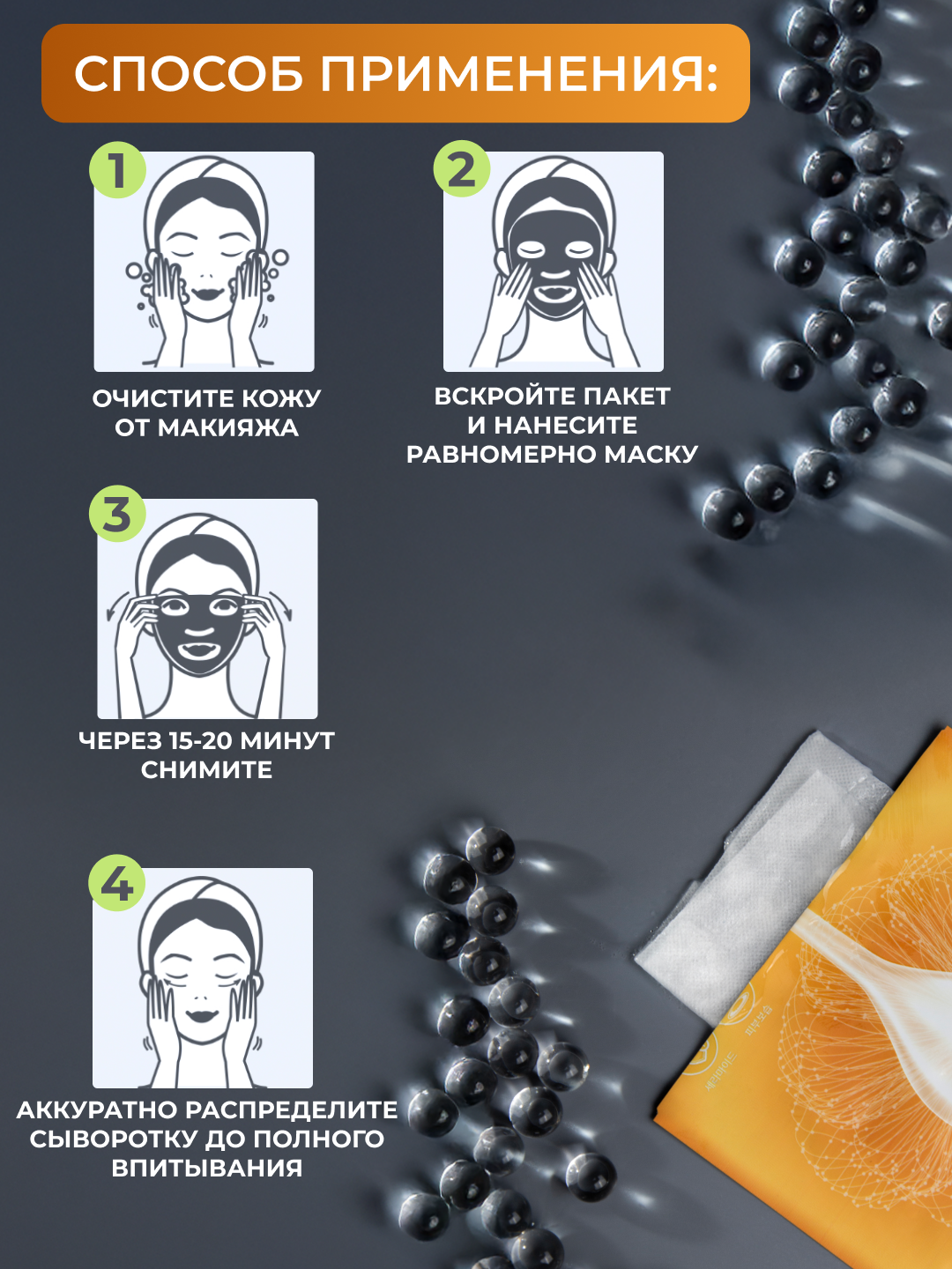 1. Очистите кожу лица пенкой или лосьоном.2. Вскройте упаковку и нанесите маску на лицо, равномерно распределив ее по коже.