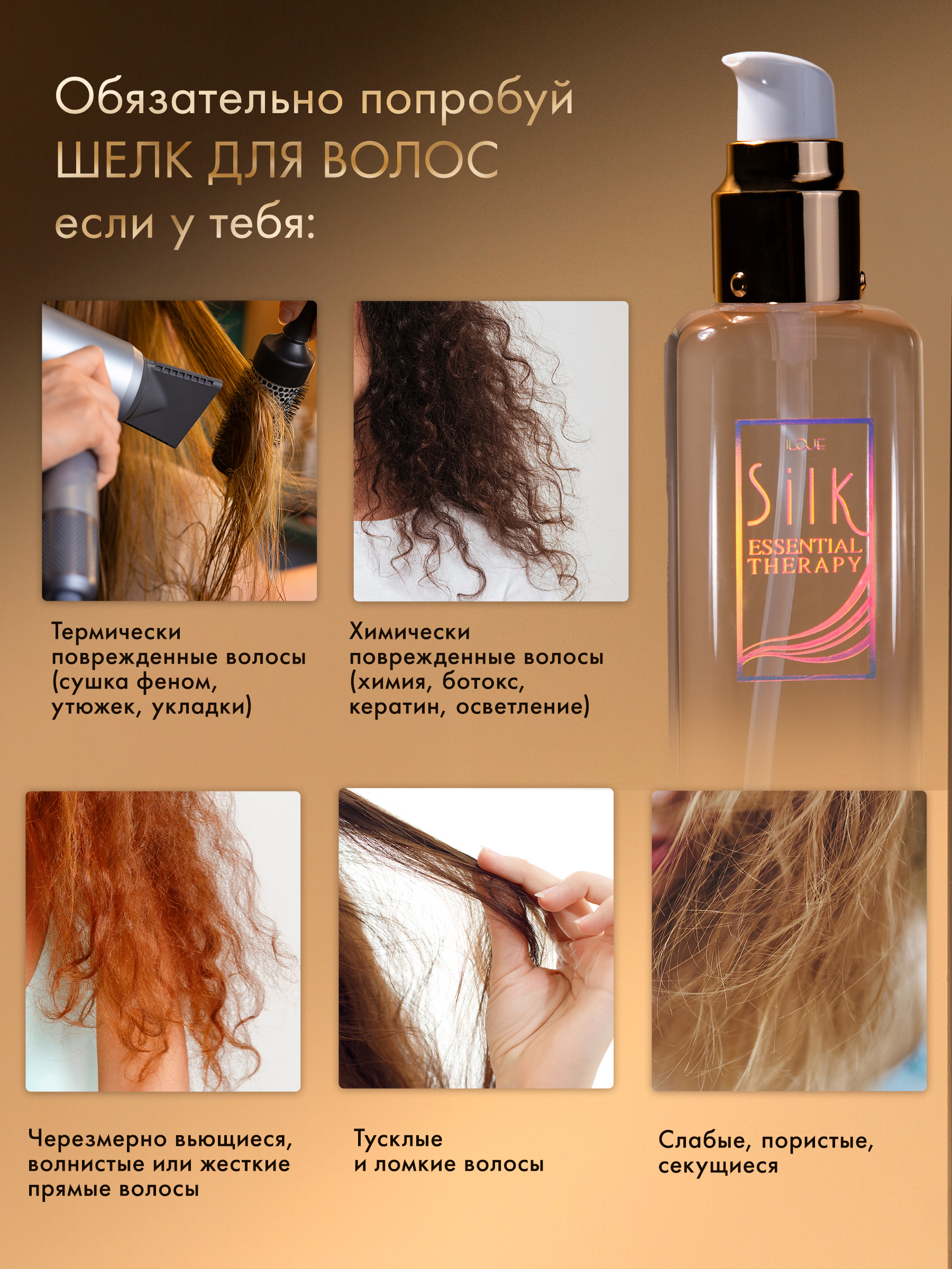 ILOJE Silk Essential Therapy - это идеальное легкое восстанавливающее средство для защиты и поддержания волос в оптимальном состоянии. Уникальная саморегулирующаяся формула обеспечивает сбалансированное кондиционирование и увлажнение. Концентрированный полипептид шелка, обогащенный растительными компонентами и ацетатом витамина Е, придает волосам гладкость и шелковистость, обеспечивая при этом ослепительный блеск.