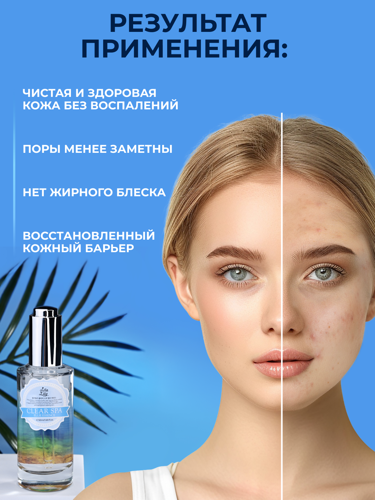Konad LILA LILY Clear Spa Ellie Essence Эссенция для лица для увлажнения кожи / очищения пор / уменьшения воспалений, 50 мл