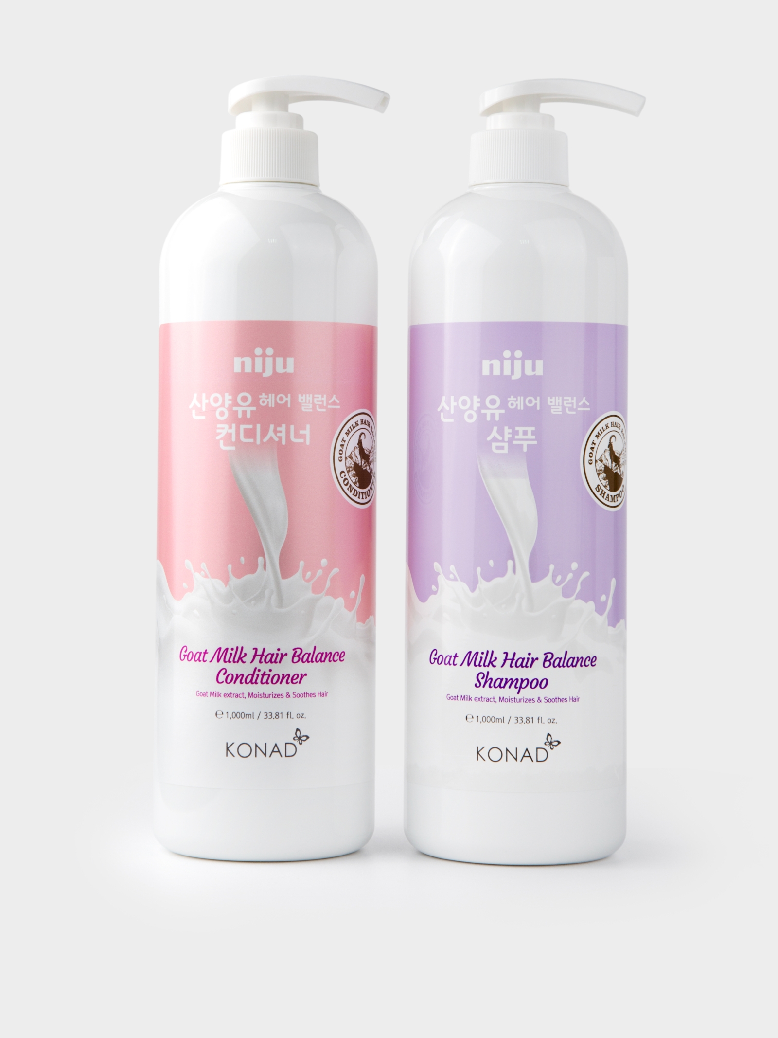Konad Niju Goat Milk Набор Шампунь 1000 мл + Кондиционер для волос 1000 мл с козьим молоком