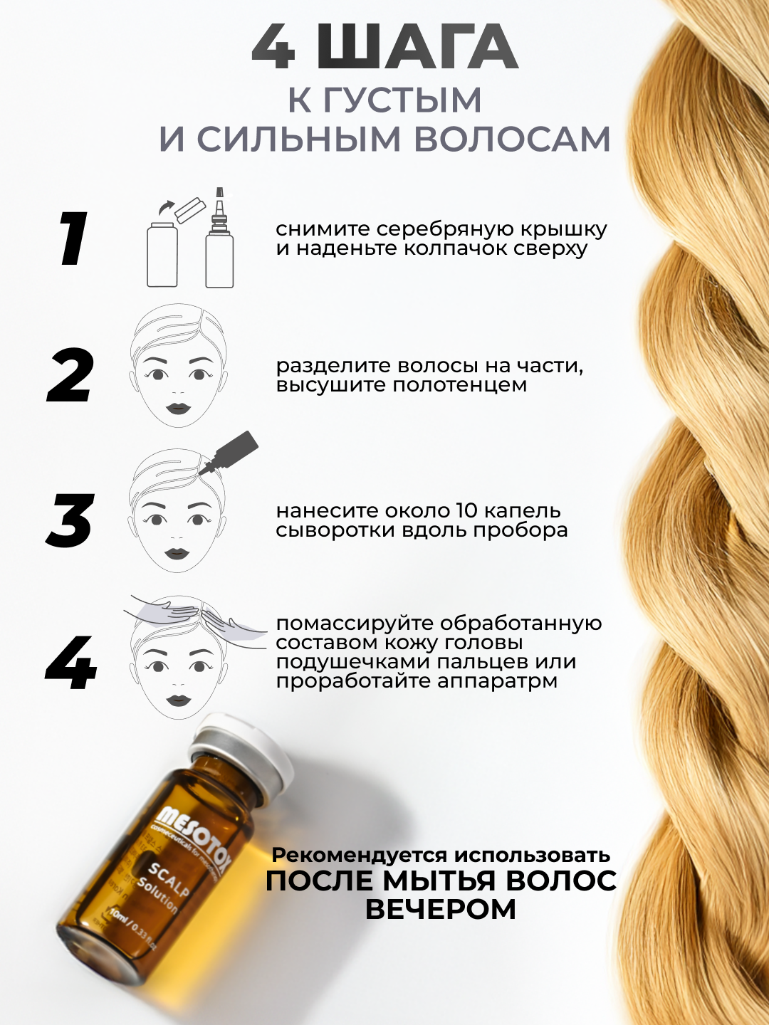 - Сыворотка используется по протоколу процедуры мезотерапии для кожи головы / волос с помощью мезороллера или дермапена.