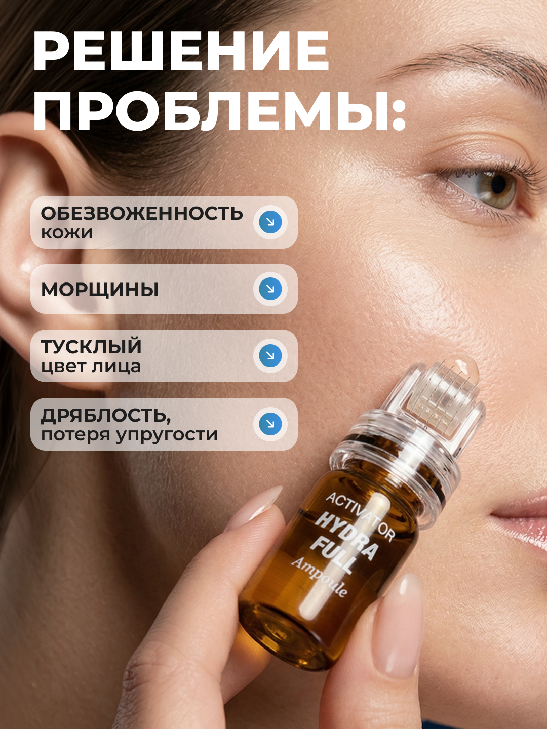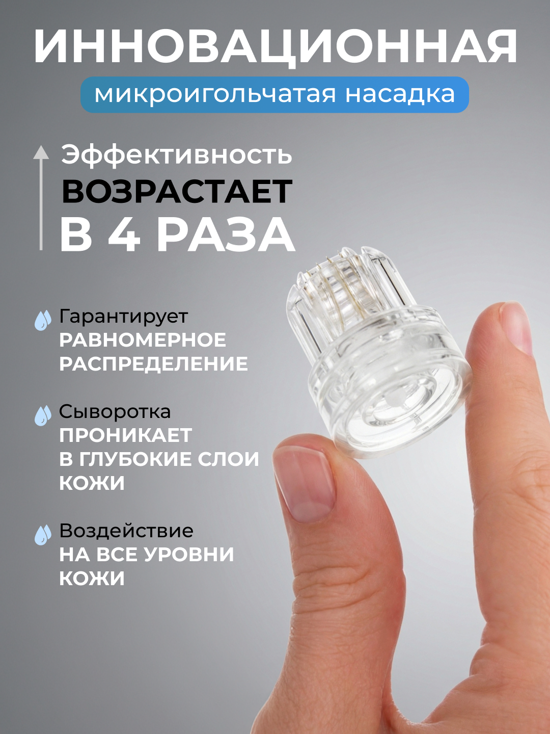 Преимущества мезороллера в виде насадки на ампулу мезококтейля:+ простое и безопасное использование в домашних условиях