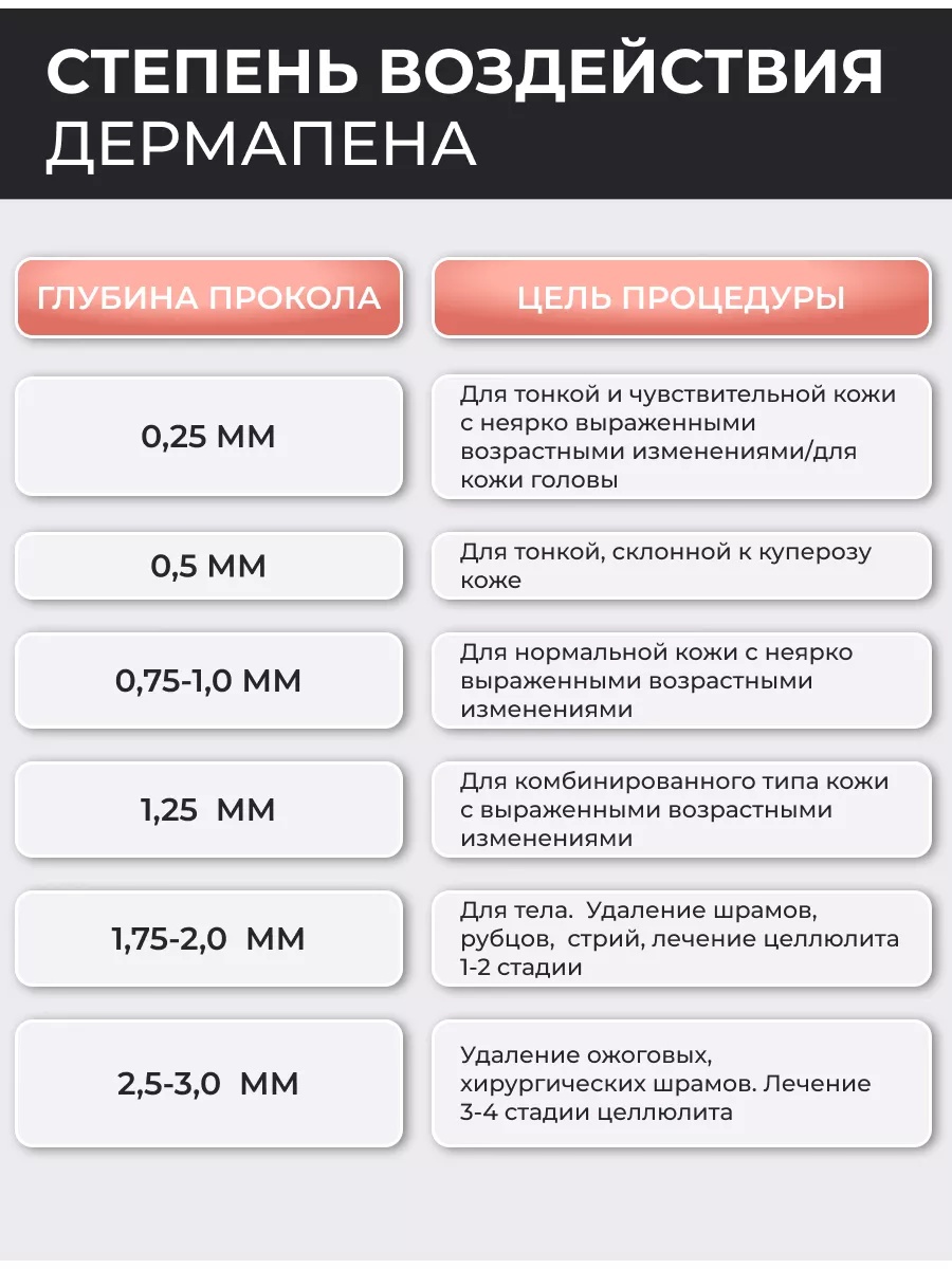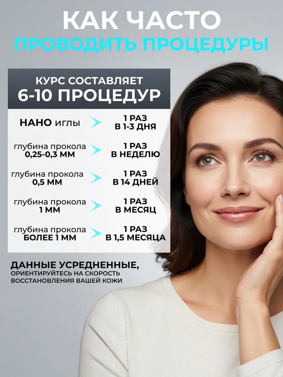 - Подтяжка овала лица в домашних условиях: регулировка длины иглы от 0.2 до 2.5 мм.