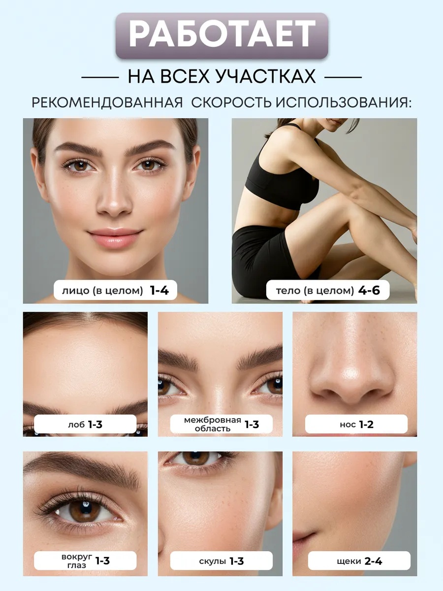- Как быстро убрать морщины: 5 скоростей интенсивности.