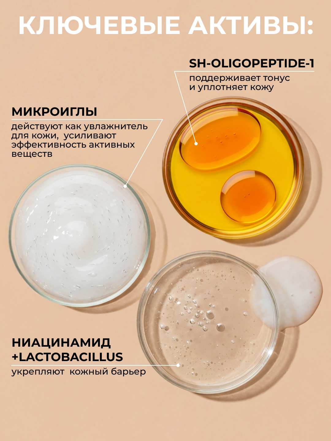 - sh-олигопептид-1 (EGF) - играет важную роль в ускорении регенерации кожи и восстановлении поврежденных тканей кожи и может способствовать делению клеток кожи, делая ее более здоровой.