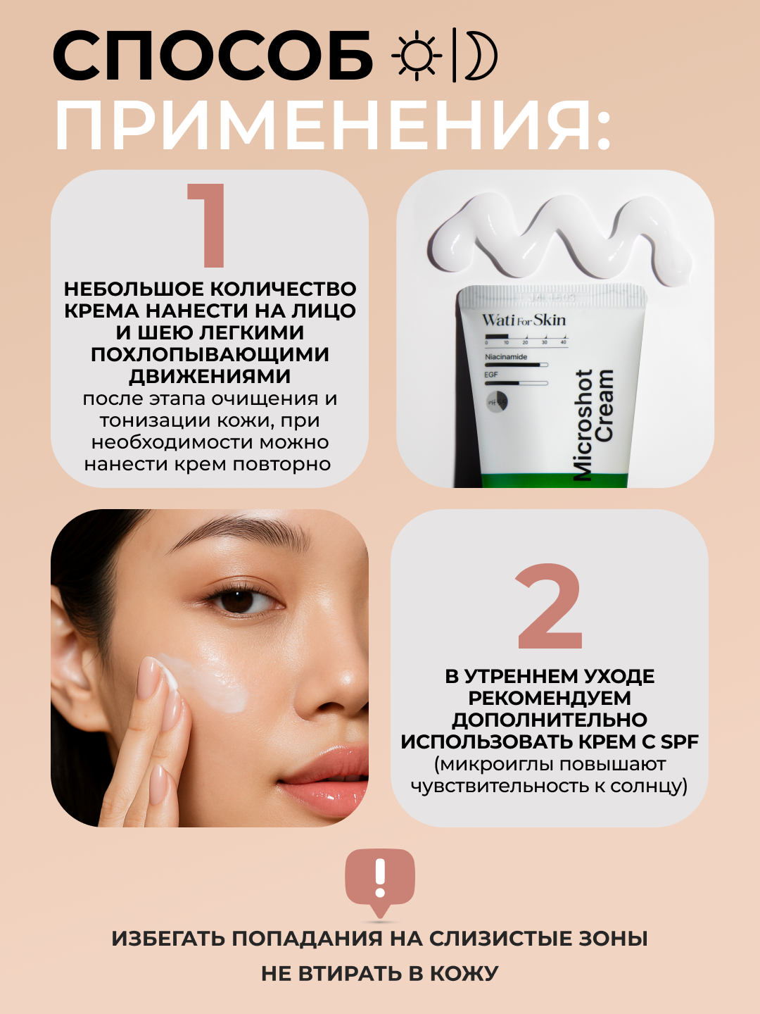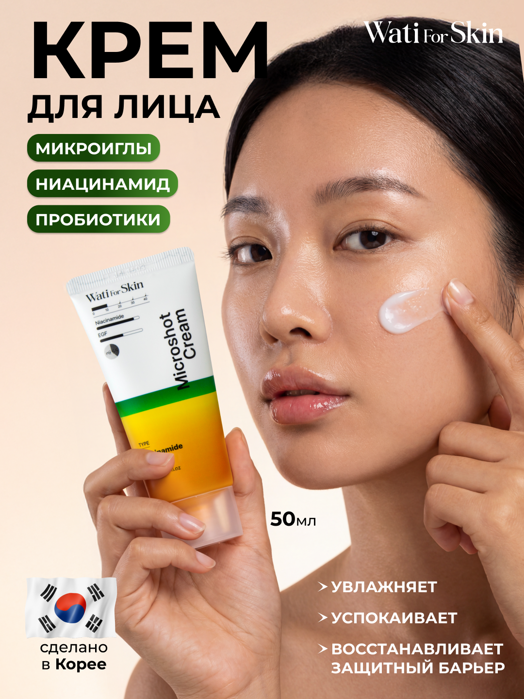 Wati For Skin Niacinamide EGF Microshot Cream Крем для лица с ниацинамидом, EGF пептидами и микроиглами, 50 мл — полный каталог